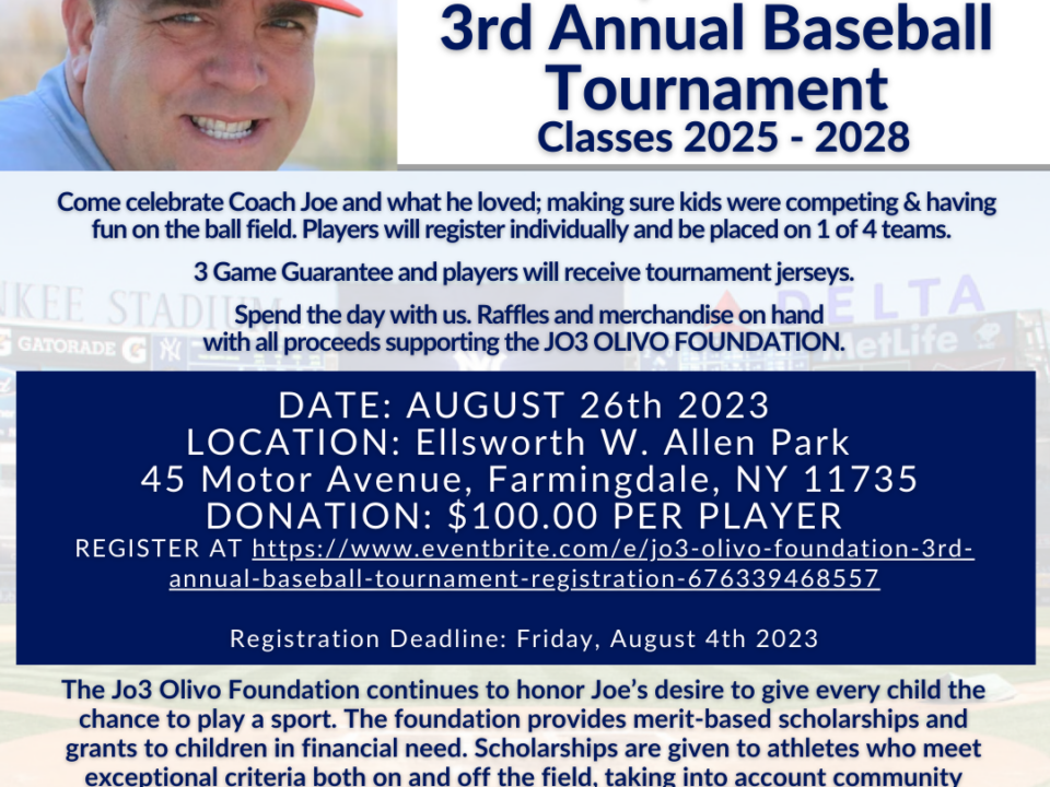In memory of a life well lived but cut too short, Joe Olivo's family and friends have created this 501(c)(3) foundation to help bring sports to those in need. Whether it is equipment, tuition, showcase costs, travel costs, etc., the foundation endeavors to assist children have a chance to benefit from youth sports. Additionally, funds may be given to families in the sports community that find themselves in financial need due to extenuating circumstances.